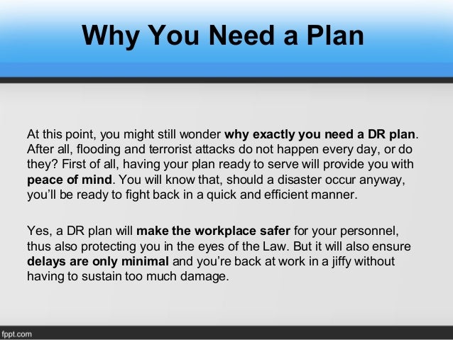 Disaster Recovery Plan Your (Template) Why Do We Care? Disaster Recovery Planning is a relevant topic for businesses of all This is a critical step – you need to know what you’re protecting and what its value to the business is, ... Read Full Source