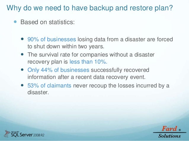 Below are 10 reasons your business should consider a Disaster Recovery Plan. Because you spent a lot of time building your brand, you need to protect it. Downtime and lost data can ruin reputation, brand and diminish trust that can result in lost revenue, ... Access Full Source